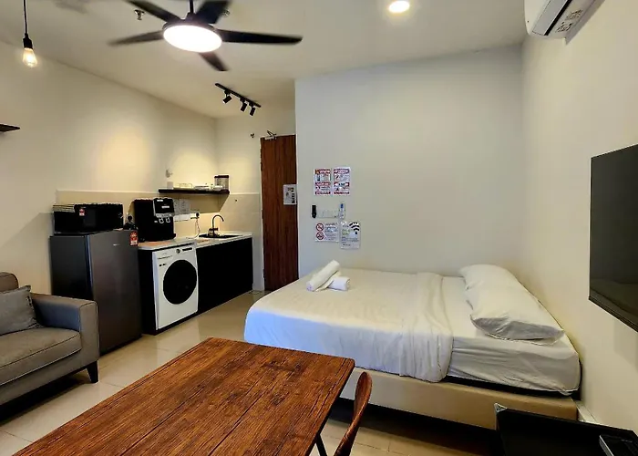 The 38 m² The Shore Kk City View S15 By Bc 亚比城市景观 Kota Kinabalu apartment offers easy entry to such city sights as the Warisan Square, situated merely 6 minutes' walk away. At this 1-bedroom apartment guests can lounge by a private swimming pool or visit the shopping mall "Centre Point", which is located 500 metres away.